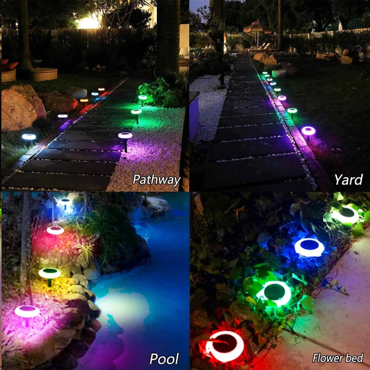 Make your home look like a getaway retreat with our colorful solar path light! Instead of just one boring light usually white, Colorful solar path light showcases your home with 8 beautiful color modes. They are red, green, blue, white, color-changing rainbow. No matter what mood or atmosphere you want, this light will give it to you at the click of a button. Our solar light is 100% solar-powered, there will be no ugly wires running up your wall and causing an eye-sore. It is made of solid construction for long-lasting durability. No worries about raining and snowing, the solar path light can work normally under all kinds of weather with the waterproof rating of IP65 and weatherproof. This product is good at decorating your garden, patio, pathway, lawn, yard, walkway as landscape lighting for Christmas, Halloween, parties, camping, wedding, and so on. Buy now!