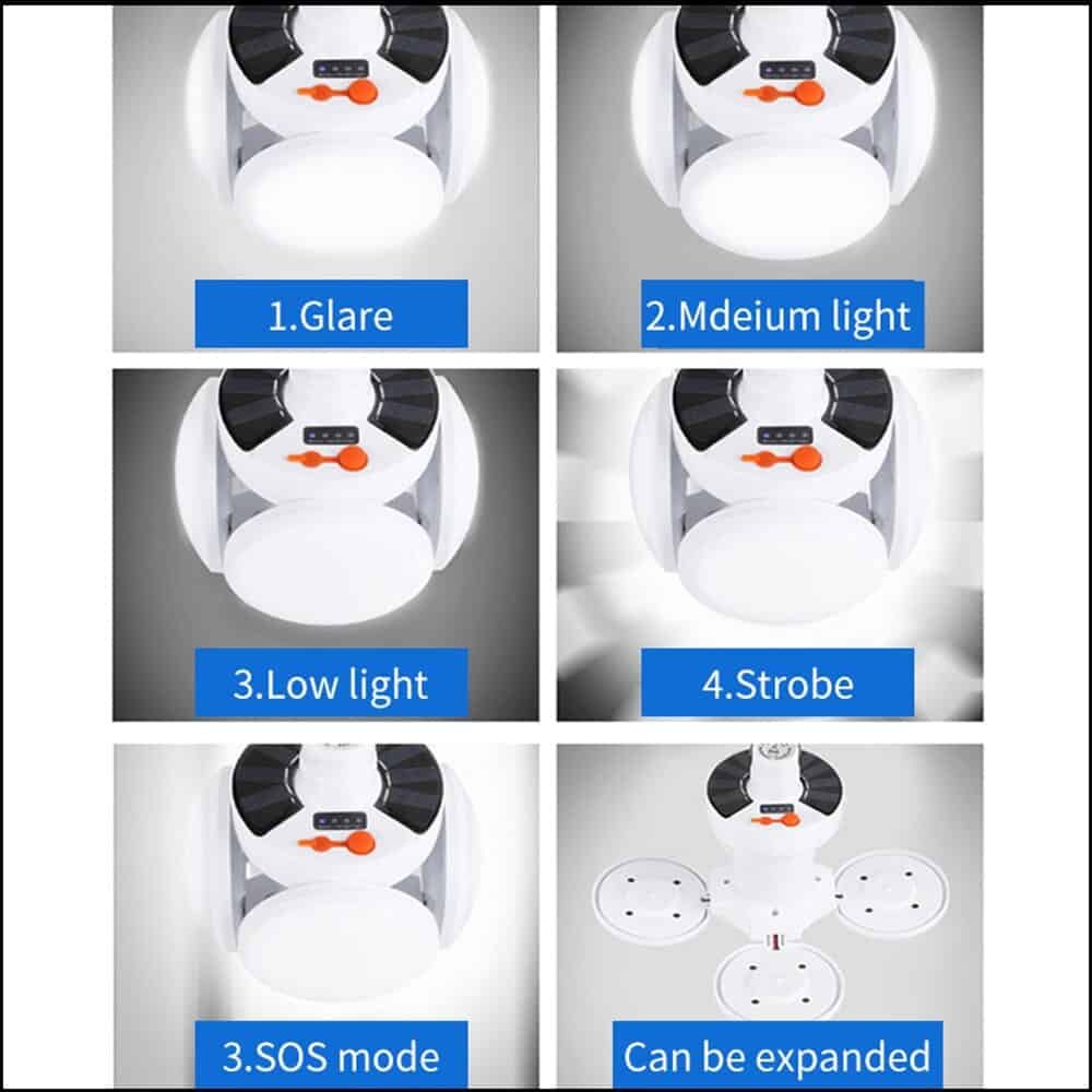Five Modes: This premium solar rechargeable LED light bulb will adjust its brightness to your specific needs with 5 different lighting modes. Choose from High Light, Low Light, SOS Light to meet you whenever and wherever.