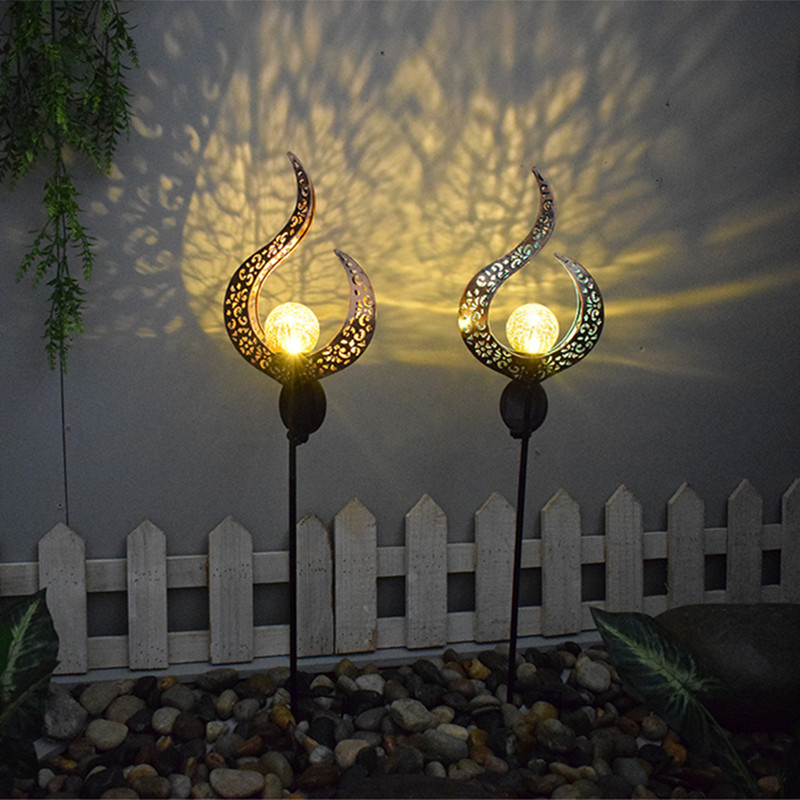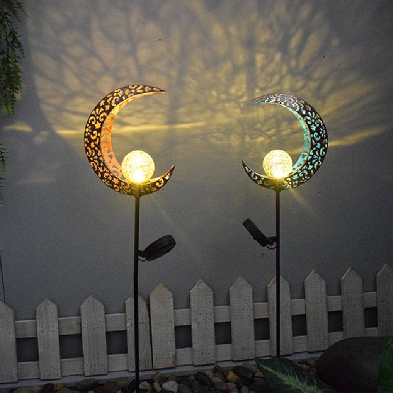 The Moon Solar Light is designed with a warm white LED. The reflection of the pattern is beautiful enough to make a romantic atmosphere. Easy Installation With a garden stake stand, no wiring or external electricity are required. The LED light is powered by solar energy, no-cost lighting. Long-Lasting This LED light can work for 6-8 hours after fully charged with its lifespan of 100000 hours. Scopes of Application Made of durable iron and glass, this solar LED light can be used for decorating your pathway, garden, lawn or courtyard.