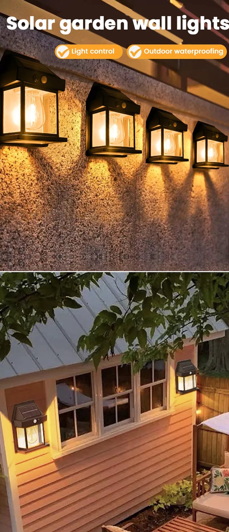 Smart Motion Sensor: The solar wall light has a built-in intelligent motion sensor that sensitively detects motion within a 120° angle within 8 meters. Press the on/off to switch 3 different modes: [1] When motion is detected, the wall light will turn on to 100%, and will be off after the movement leavs for 15s. [2] When motion is detected, it will turn on to 100%, the solar wall light will change to 50% brightness after the movement leaves for 15s. [3] Always keep 50% low brightness mode all night.