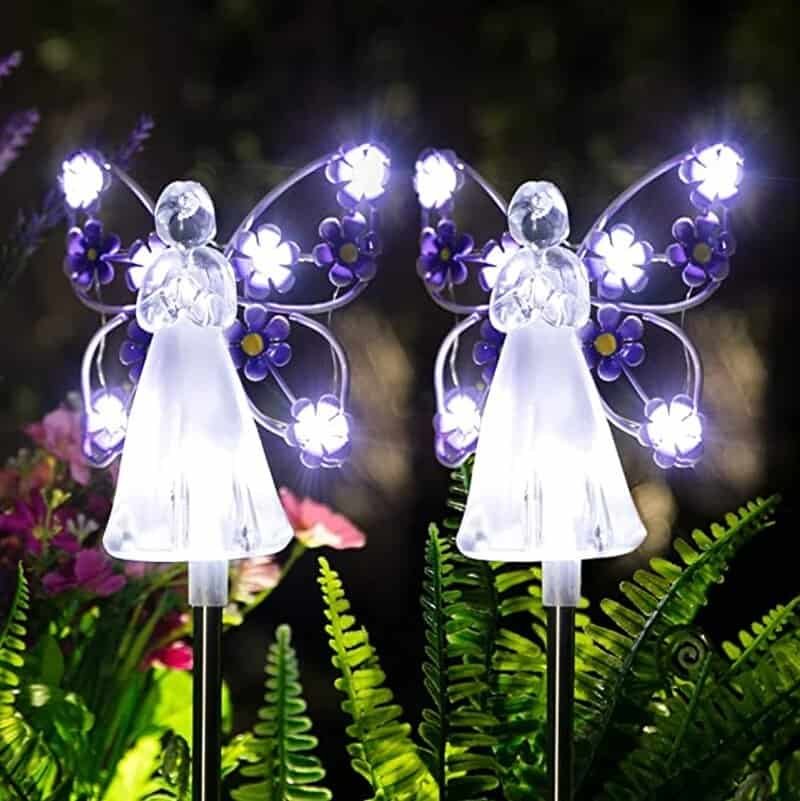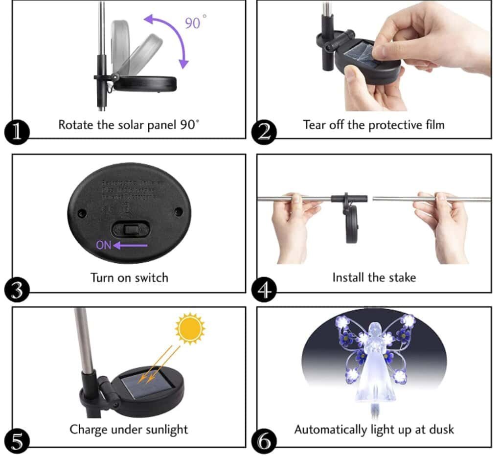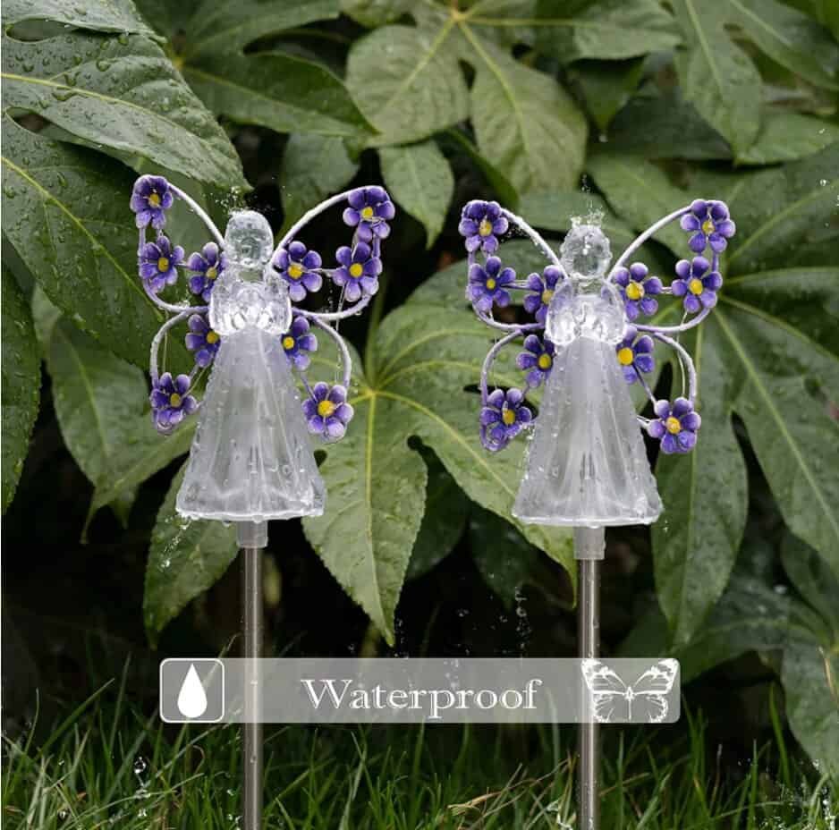 🌟[Energy Efficiency] 100% solar powered, no wiring required. Turn on the power switch before use, the solar angel lights will automatically charge and store energy during the day, and at night these outdoor solar angel lights will automatically light up your garden, saving you time and electricity bills.