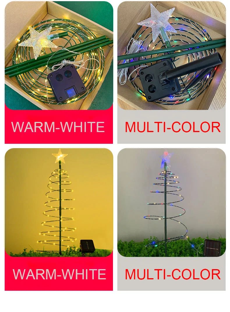 Featuring a weather-resistant, durable spiral frame with ultra-bright LED lights in either warm white or multi-color and a glow-in-the-dark star topper.