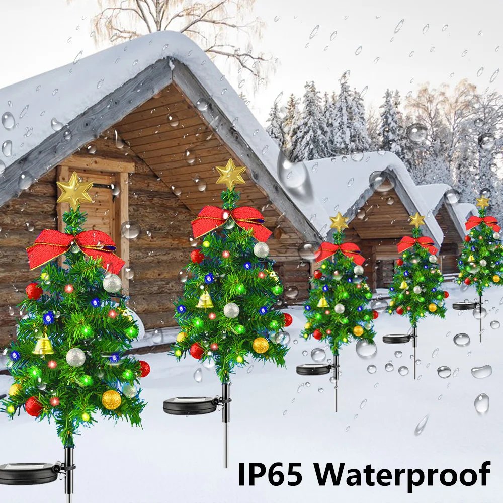 The outdoor solar garden lights with IP65 waterproof feature, even in bad weather work well and long lasting. The Xmas tree is solar energy powered, and upgraded solar panel,they can convert sun energy faster and more efficiently.