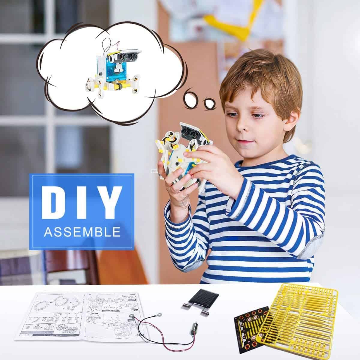 【No batteries needed】: Powered by the sun,no batteries needed.The robot kit includes a solar power panel that collects solar heat energy into an electric energy drive motor, which drives the gears to make the machine run smoothly.